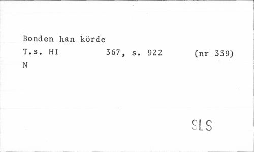 //// Bonden han körde //// T.s. Hl 367, s. 922 (nr 339) //// N //// SLS ////