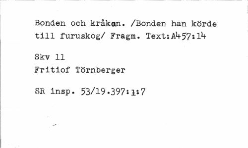 //// Bonden och kråkan. /Bonden han körde till furuskog/ Fragra. Text;Ak57: //// Skv 11 //// Fritiof Törnberger SR insp. 53/19.397:1:7 ////