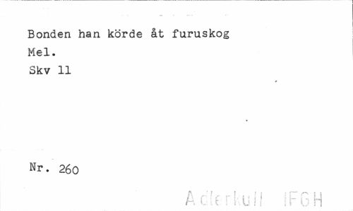 //// Bonden han körde åt furuskog //// Mel. //// Skv 11 //// Nr. 260 //// A c ler ku I! FGH ////