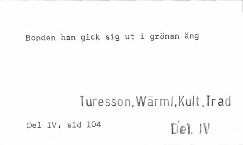 //// Bonden han gick sig ut i grÖnan äng //// Turesson, Wärmi,Kult. Tr ad //// Del IV, sid 104 jy ////
