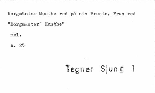 //// Borgmästar Munthe red på sin Brunte, Frun red "Borgiaästar' Munthe" mel. s. 25 //// lecner Si un c 1 //// V 1 - ////
