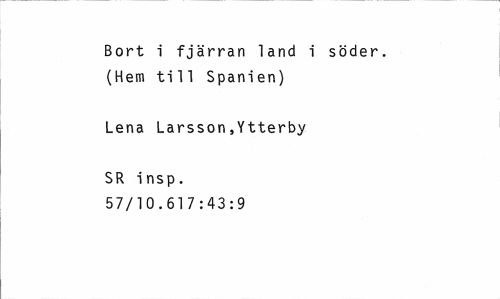 //// Bort i fjärran land i söder. (Hem till Spanien) //// Lena Larsson .Ytterby //// SR insp. 57/10.617:43:9 ////