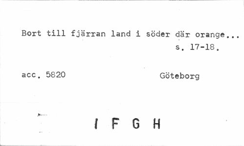 //// Bort till fjärran land i söder där orange... //// s. 17-18. //// acc. 5820 Göteborg //// I F G H ////