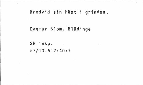 //// Bredvid sin häst i grinden, //// Dagmar Blom, Blädinge //// SR insp. 57/10.617:40:7 ////