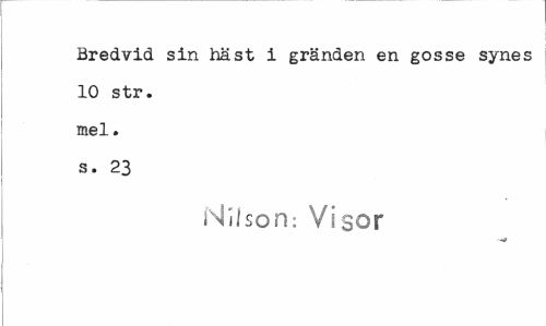 //// Bredvid sin häst i gränden en gosse synes 10 str. mel. s. 23 //// Nilson: Visor ////