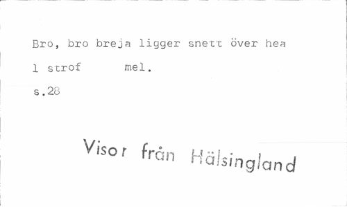 //// Bro, bro breja ligger snett över hea 1 strof mel. //// s. 28 //// Visor från Hälsingland ////