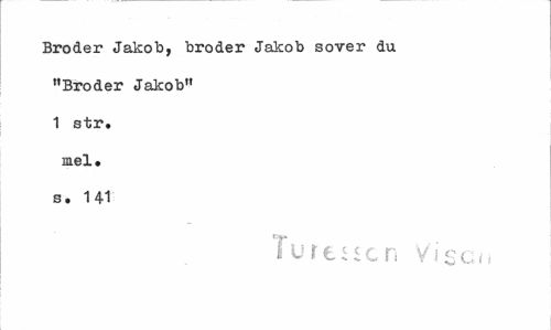 //// Broder Jakob, broder Jakob sover du "Broder Jakob" 1 str. mel. s. 141 //// Turtiicn Visen ////