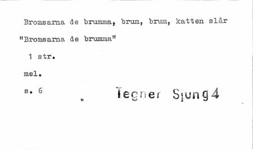 //// Bromsarna de brumma, brum, brum, katten slår "Bromsarna de brumma" 1 str. mel» //// s* 6 e lecnef S<un{j4 ////