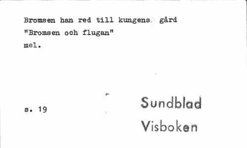 //// Bromsen han red till kungens gård //// "Bromsen och flugan" //// mel. //// r- //// s, 19 Sundblad //// Visboken ////