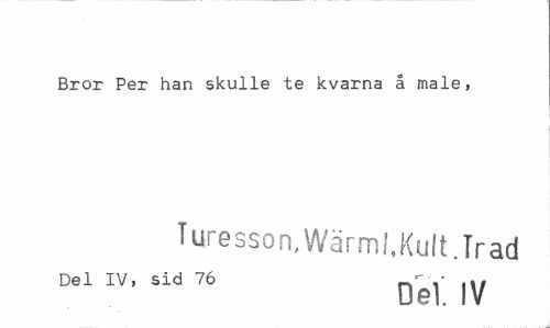 //// Bror Per han skulle te kvarna å male, //// Turesson, Wärml.Kult.Trad //// Del IV, sid 76 Qe1 |V ////