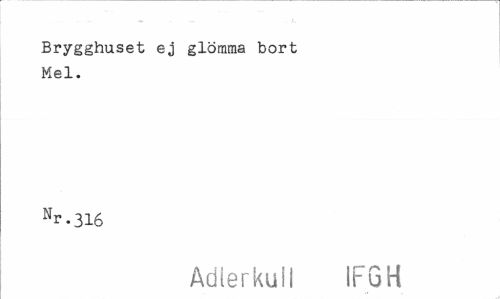 //// Brygghuset ej glömma bort Mel. //// Nr.316 //// Adlerkull IFGH ////