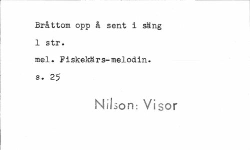 //// Bråttom opp å sent i säng 1 str. //// mel. Fiskekärs-melodin, s. 25 //// Nilson: Visor ////