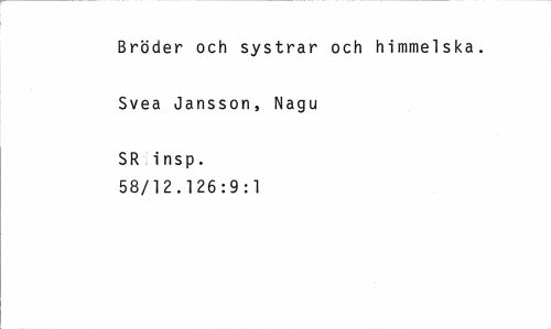 //// Bröder och systrar och himmelska. //// Svea Jansson, Nagu //// SR insp. 58/12.126:9:1 ////