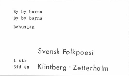 //// By by barna By by barna //// Bohuslän //// Svensk Folkpoesi //// 1 str //// sid 88 Klintberg -Zetterholm ////