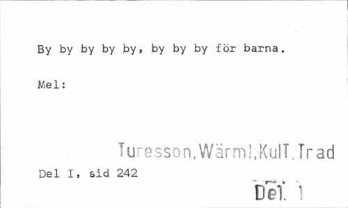 //// By by by by by, by by by för barna. Mel: //// Turesson.Wärml.KulT.Trad //// Del I, sid 242 //// Del 1 ////