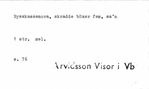 //// Bysskassemora, skrädde boxer fem, sa'n //// 1 str, mel. s. 76 //// \rv.csson Visor i Vb ////