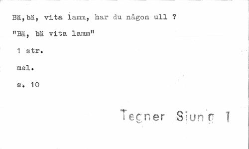 //// Bä,bä, vita lamm, har du någon ull ? "Bä, bä vita lamm" 1 str. mel. s. 10 //// Teer,er Shm r 1 //// W V.' ////