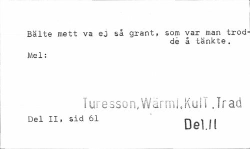 //// Bälte mett va ej så grant, som var man trod //// de å tänkte . //// Mel: //// Turesson,Wärml.KuIT.Tra d //// Del II, sid 61 r\ > , i //// DeUI ////