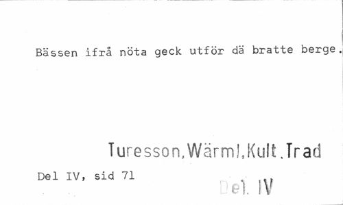 //// Bässen ifrå nöta geck utför dä brätte berge, //// Turesson,Wärml,Kult.Träd //// Del IV, sid 71 //// el IV ////