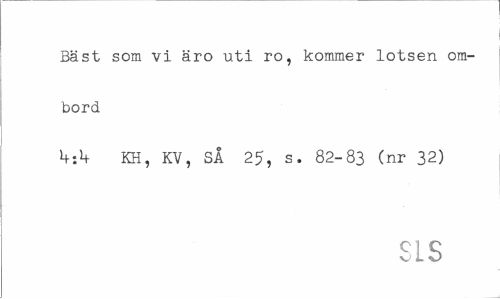 //// Bäst som vi äro uti ro, kommer lotsen ombord //// k ib KH, KV, SÅ 25, s. 82-83 (nr 32) //// SIS ////