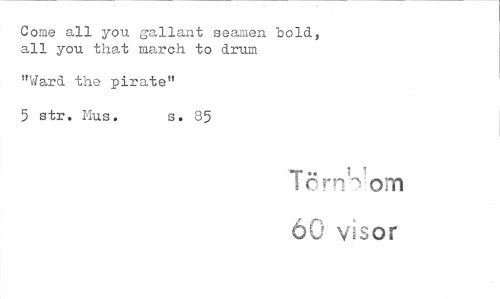 //// Come all you. gal lan t seamen böld, all you that march to drum //// "Ward the pirate" //// 5 str. Mus. s. 85 //// T « ' " //// s orm om //// 60 visor ////
