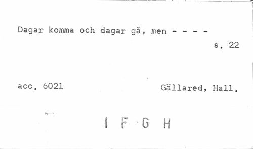 //// Dagar komma och dagar gå, men - - - - //// s, 22 //// acc. 6021 Gällared, Hall, //// I F G H ////