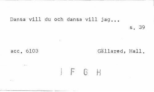 //// Dansa vill du och dansa vill jag.,. //// s. 39 //// acc. 6103 Gällared, Hall. //// I F 6 H ////