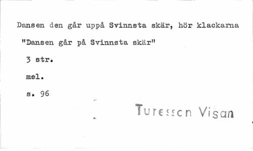 //// Dansen den går uppå Svinnsta skär, hör klackarna "Dansen går på Svinnsta skär" 3 str. mel. s. 96 //// Tu rcucn Vi san ////