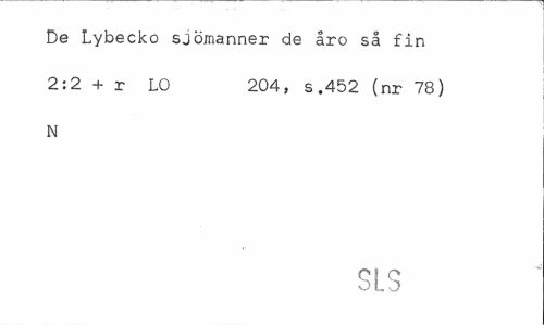 //// De Lybecko sjömanner de åro så fin 2:2 + r LO 204, s.452 (nr 78) //// N //// SLS ////