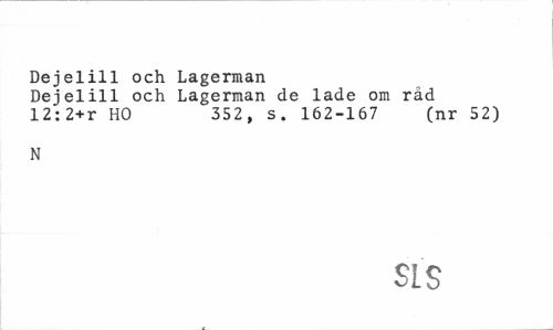 //// Dejelill och Lagerman //// Dejelill och Lagerman de lade om råd //// 12:2+r HO 352, s. 162-167 (nr 52) //// N //// SLS ////