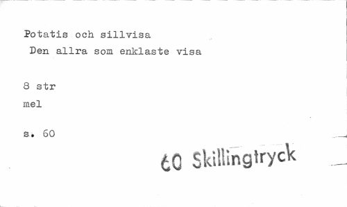 //// Potatis och sillvisa Den allra som enklaste visa //// 8 str mel //// s. 60 //// tQ Skillinglryck __ ////