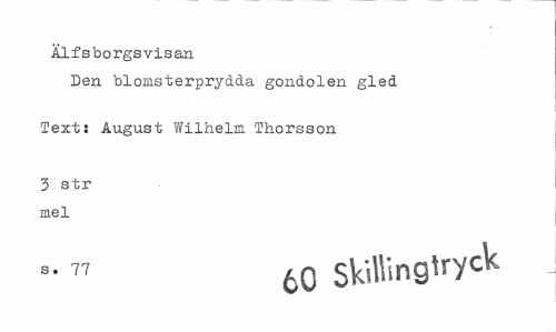 //// Alfsborgsvisan //// Den blomsterprydda gondolen gled //// Texts August Wilhelm Thorsson //// 3 str mel //// 6Q skilVmg^ycV ////
