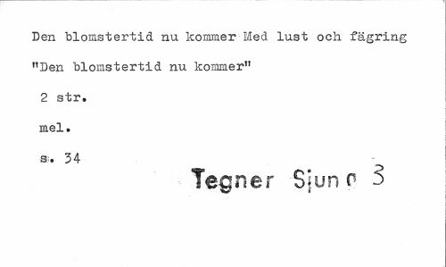 //// Den blomstertid nu kommer Med lust och fägring "Den blomstertid nu kommer" 2 str. mel. s. 34 //// Teg ner Sjun o 3 ////