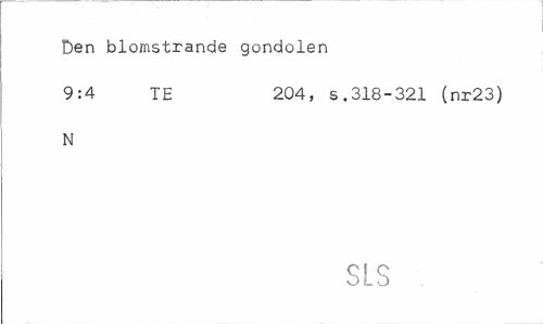 //// Den blomstrande gondolen //// 9:4 TE 204, s.318-321 (nr23) //// N //// SLS ////