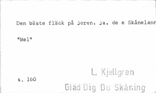 //// Den bäste fläck på Joren, 3a, de e Skånelani "Mel" //// L Kjellgren //// s. 160 //// Gläd O i q Du Skåning ////