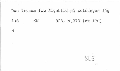 //// Den fromma fru Signhild på sotsängen låg 1:6 KN 523, s.373 (nr 178) //// N //// SLS ////