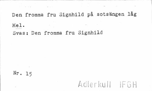 //// Den fromma fru Signhild på sotsängen låg Mel. //// Svas: Den fromma fru Signhild Nr. 15 //// Adlerkull iFGH ////