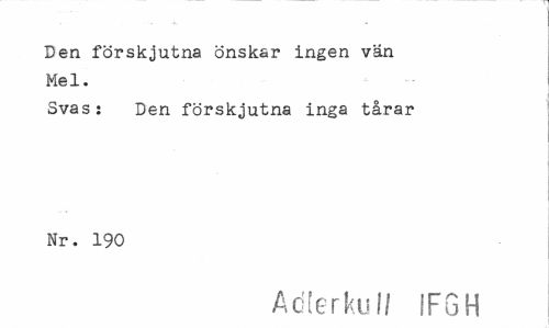 //// Den förskjutna önskar ingen vän Mel. //// Svas: Den förskjutna inga tårar Nr. 190 //// Adlerkuil IFGH ////