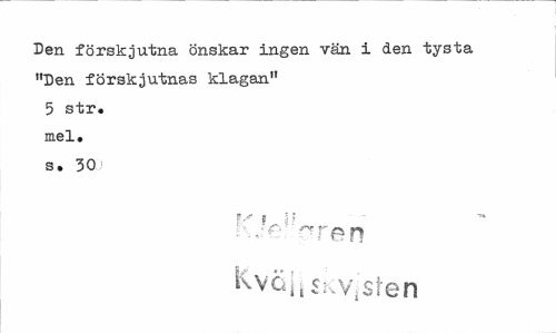//// Den förskjutna önskar ingen vän i den tysta "Den förskjutnas klagan" 5 str. mel. s. 30' //// IS 5 ii? //// r% je:'^ren Kväll sKViSten ////