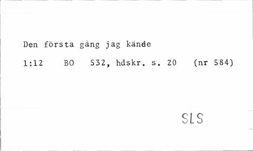 //// Den första gäng jag kände //// 1:12 BO 532, hdskr. s. 20 (nr 584) //// SL S ////