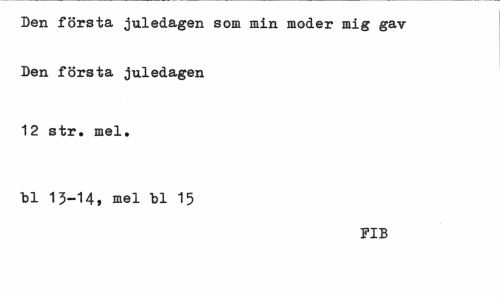 //// Den första juledagen som min moder mig gav Den första juledagen //// 12 str. mel. bl 13-14, mel bl 15 //// FIB ////