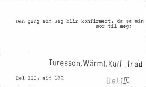 //// Den gang som jeg blir konfirmert, da sa min //// mor til meg: //// Turesson, Wärml.KufT. fr ad //// Del III, sid 182 jjj^ ////