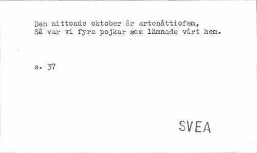 //// Den nittonde oktober år artonåttiofem, Så var vi fyra pojkar som lämnade vårt hem. //// s. 37 //// SVEA ////