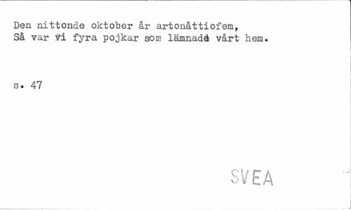 //// Den nittonde oktober år artonåttiofem, Så var vi fyra pojkar som lämnadé vårt hem. //// s. 47 //// SVEA ////