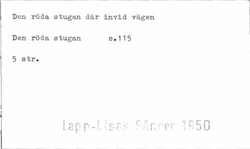 //// Den röda stugan där invid vägen Den röda stugan s.115 //// 5 str. //// Lapp-Lisa? Sån ner 1^50 ////