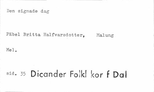 //// ¦Den signade dag //// Päbel Britta Halfvarsdotter, Malung Mel. //// sid. 35 Dic-arider Folk! kor f Dal ////