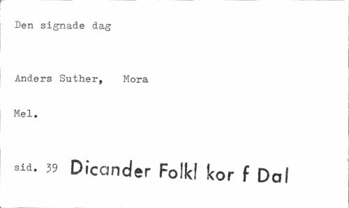 //// Den signade dag //// Anders Suther, Mora Mel. //// 39 Dicander Folk! kor f Dal ////