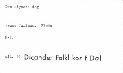 //// ¦Den signade dag //// Frans Carlman, Flöda Mel. //// sid. 30 Dic-arider Folk! kor f Dal ////