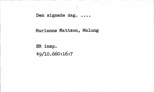 //// Den signade dag... //// Marianne Mattson, Malung //// SR insp. 49/10.660:16:7 ////