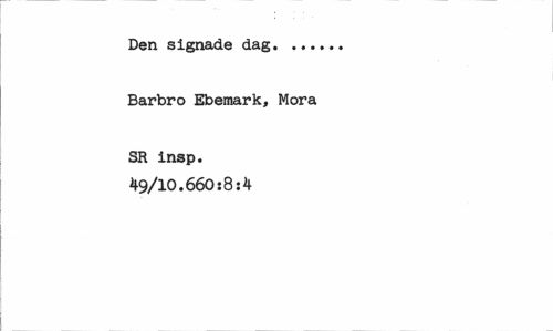 //// Den signade dag... //// Barbro Ebemark, Mora //// SR insp. 49/10.660:8:4 ////